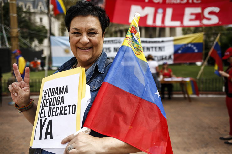 Silvia está feliz. A los 55 años se pasea por la plaza para que la gente firme un petitorio en el que le exigen al presidente estadounidense, Barack Obama, que derogue el decreto contra Venezuela. Desde 1984 viene cada 24 de Marzo a la plaza. Siente felicidad en este día. “porque todo esto es parte de un proceso latinoamericano en el que están Néstor, Cristina, el comandante Chaves, y Lula. Ellos marcaron una bisagra histórica”.