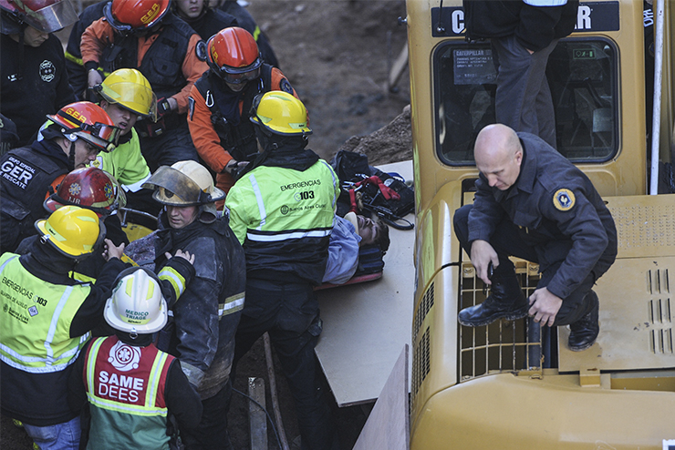 El otro obrero que había quedado atrapado fue liberado debajo de los escombros y trasladado en un helicoptero por personal del SAME. El hombre fue rescatado luego de dos horas de permanecer debajo de los escombros del lugar de la obra, ubicada en Salta al 900, y fue ubicado en una camilla y traslado en un helicóptero al hospital Santojanni.
