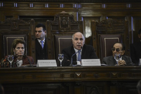 A las diez y tres minutos Ricardo Lorenzetti, el presidente de la Corte Suprema de Justicia de la Nación, abrió la Audiencia Pública con novedades. "Tenemos la necesidad de indagar cuestiones concretas. Lo que hemos hecho es elaborar una cantidad de preguntas consensuadas por todos los ministros para las partes", informó y dispuso las reglas del juego. Una lista de preguntas -que serían publicadas en la pantalla- y cinco minutos como máximo para que cada parte diera su respuesta.