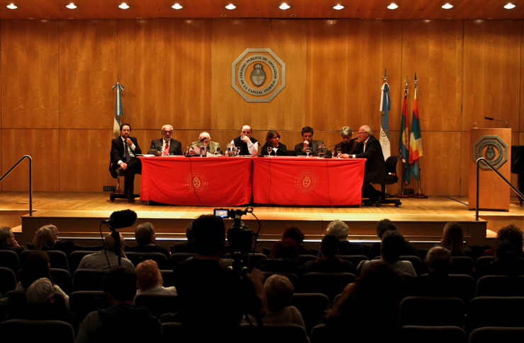 La referente de Memoria Activa compartió el panel junto al subsecretario de Política Criminal y representante de la querella por parte del Ministerio de Justicia y Derechos Humanos, Luciano Hazan; Sergio Burstein, de la asociación de familiares de víctimas 18J; el director ejecutivo del Centro de Estudios Legales y Sociales (CELS), Gastón Chillier; el periodista de Página 12 Raúl Kollman y los abogados Beinusz Szmukler y Eduardo Barcesat. El moderador de la jornada fue el presidente del Capítulo de Criminología y Psiquiatría de la Asociación de Psiquiatras Argentinos, Luis Ohman.