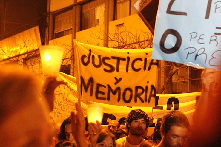 Encabezada con una bandera argentina con la leyenda "Justicia, basta de víctimas inocentes", la marcha se extendió a lo largo de tres cuadras por las calles del centro de Rosario. El silencio que acompañó a los manifestantes sólo se rompió cuando desde un altoparlante el familiar de alguna de las víctimas fatales mencionó los nombres de los 21 muertos, cada uno acompañado por el grito de "presente".
