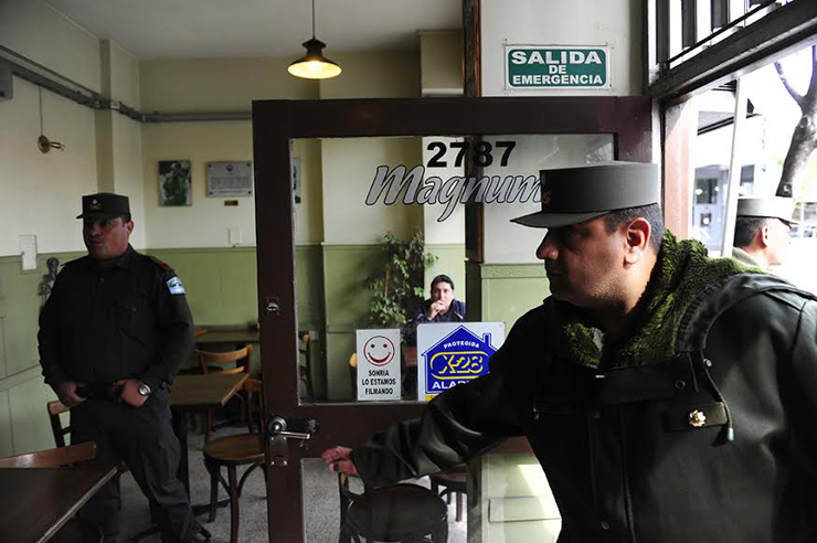 El bar Magnum sigue en pie sólo con algunas pequeñas reformas en su interior: la vidriera a la calle Córdoba sigue teniendo las ofertas del café con leche y la medialuna, el carlitos y la gaseosa. Solo una placa de cemento dibujada entre las baldosas recuerda que allí, hace 32 años, una patota militar y policial se llevó a Osvaldo “El Viejo” Cambiaso y a Eduardo “Carlón” Pereyra Rossi, uno de los últimos coletazos de la dictadura en los primeros albores de la democracia. En el marco del juicio que lleva adelante en los Tribunales Federales por la muerte de los dos dirigentes políticos, esta mañana se hizo una reconstrucción en ese bar, ubicado en Córdoba 2787. Pero poco quedaba de aquello. Los dueños de Magnum compraron el fondo de comercio en 1991 y sólo cambiaron la barra de lugar. El resto, las mesas, las sillas, está igual que en el momento en el que secuestraron a los dirigentes. El dueño del bar contesta preguntas y no es ajeno al caso. Todos los 14 de mayo, en la puerta del local, militantes sociales rinden homenaje a Cambiaso y Pereyra Rossi.